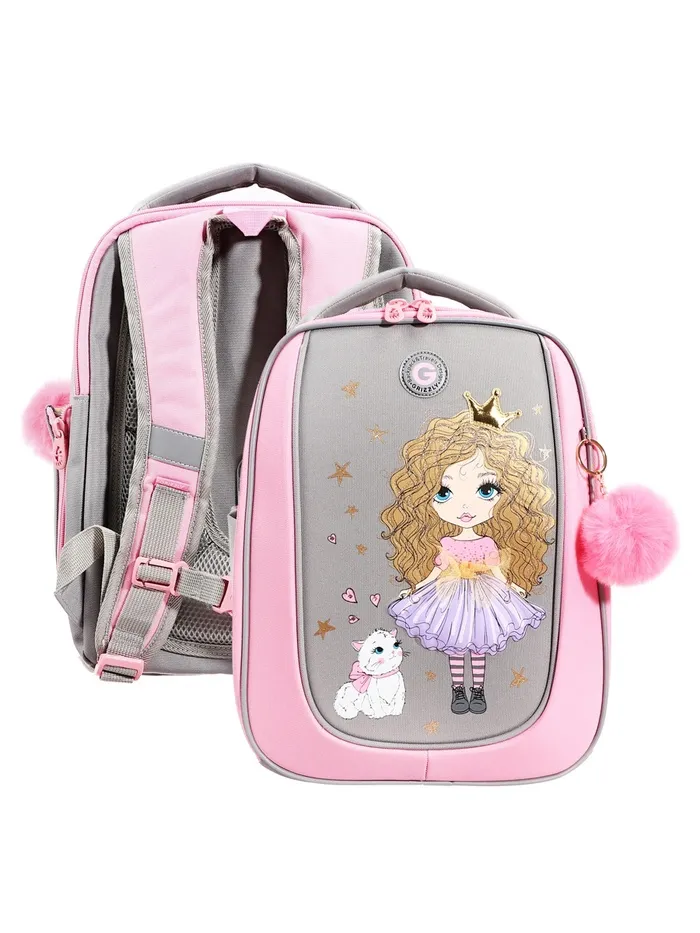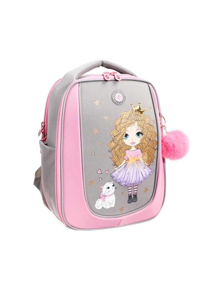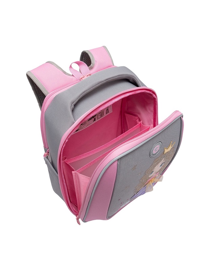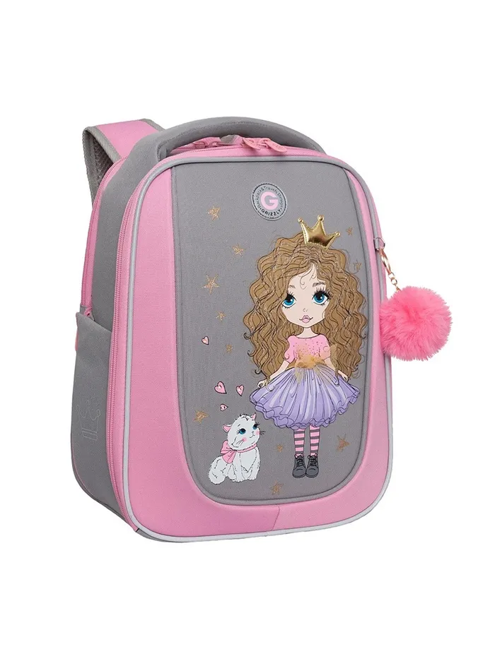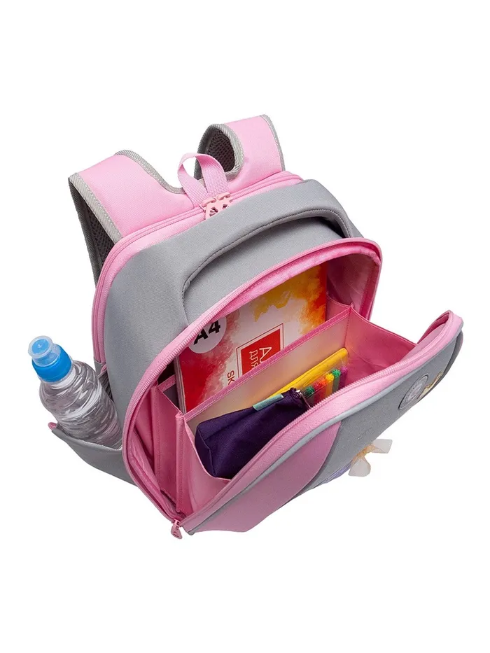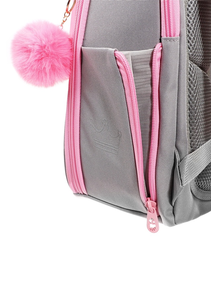 Рюкзак школьный Grizzly, 36×27×18 см, брелок, серый/розовый, RAf-592-1_3 — Характеристики