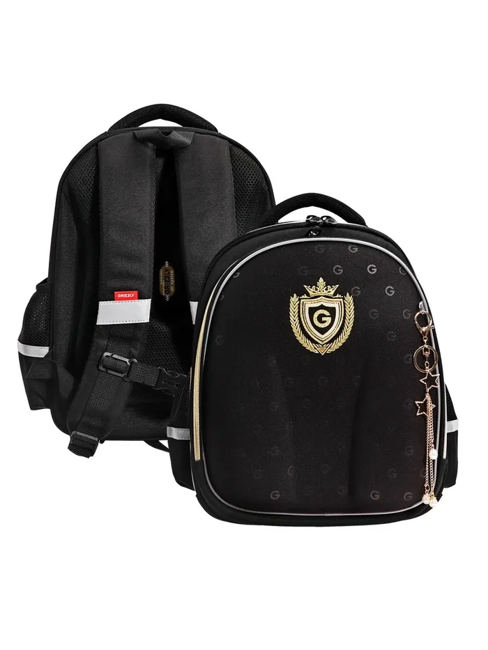 Рюкзак школьный Grizzly, 36×28×20 см, каркасный, чёрный, RAz-586-11_1 — Характеристики