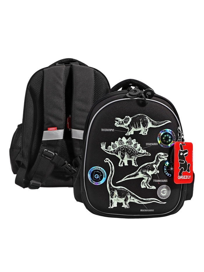 Рюкзак школьный Grizzly, 36×28×20 см, каркасный, чёрный, RAz-587-5_1 — Характеристики