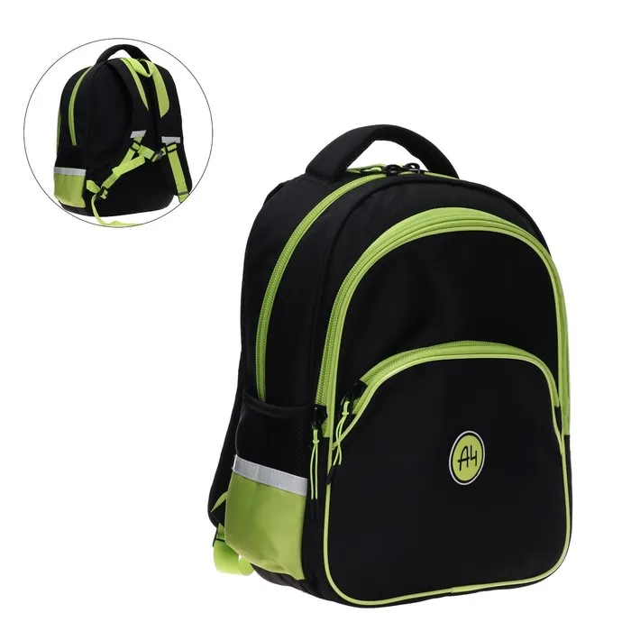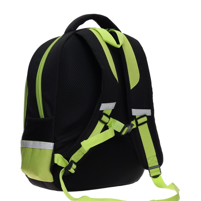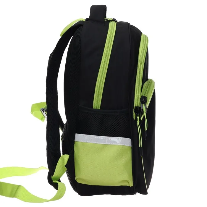 Эргономичная вентилируемая спинка с мягкими вставками, регулируемые лямки, усиленное дно, светоотражающие элементы,крупные удобные молнии, мягкая ручка для переноса и ручка-петля для подвеса. Нагрудная стяжка позволит плотно закрепить рюкзак на спине школьника. Два вместительных отделения, внутри основного – карман-перегородка, во втором отделении – новый функциональный органайзер , включающий два кармана на молнии для мелочей и мобильного телефона, отстегивающийся карабин для ключей. Глубокий передний карман на молнии и боковые карманы для бутылки с водой или термоса. Светоотражающие элементы на лямках, передней и боковых частях рюкзака обеспечивают безопасность ребенка на дороге.