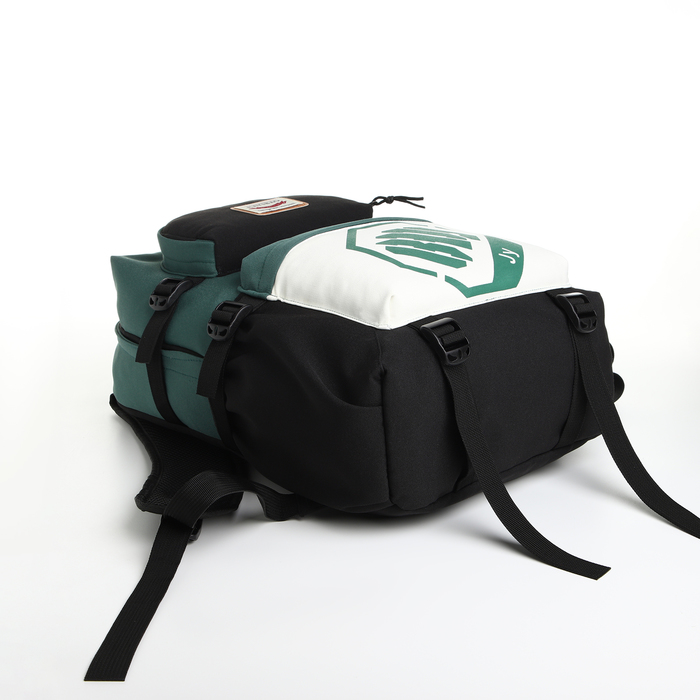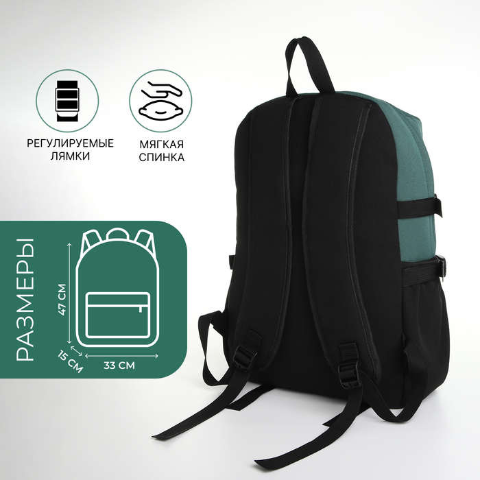 Рюкзак школьный из текстиля, 2 кармана, чёрный, зелёный — Характеристики