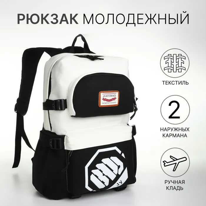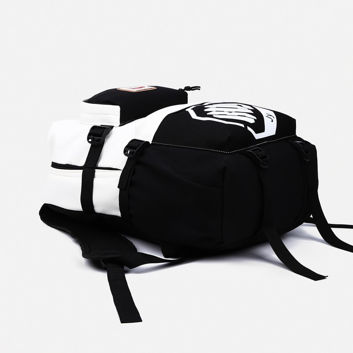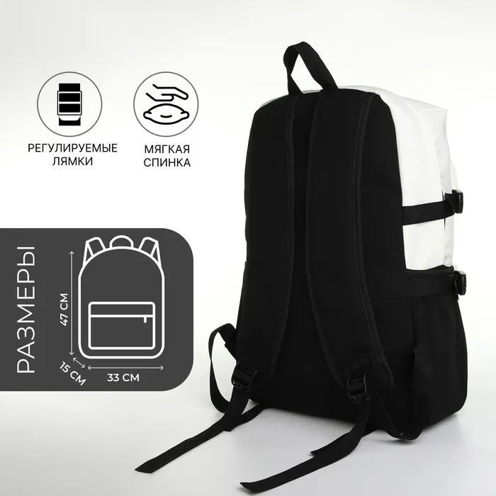 Рюкзак школьный из текстиля, 2 кармана, цвет чёрный/белый — Характеристики