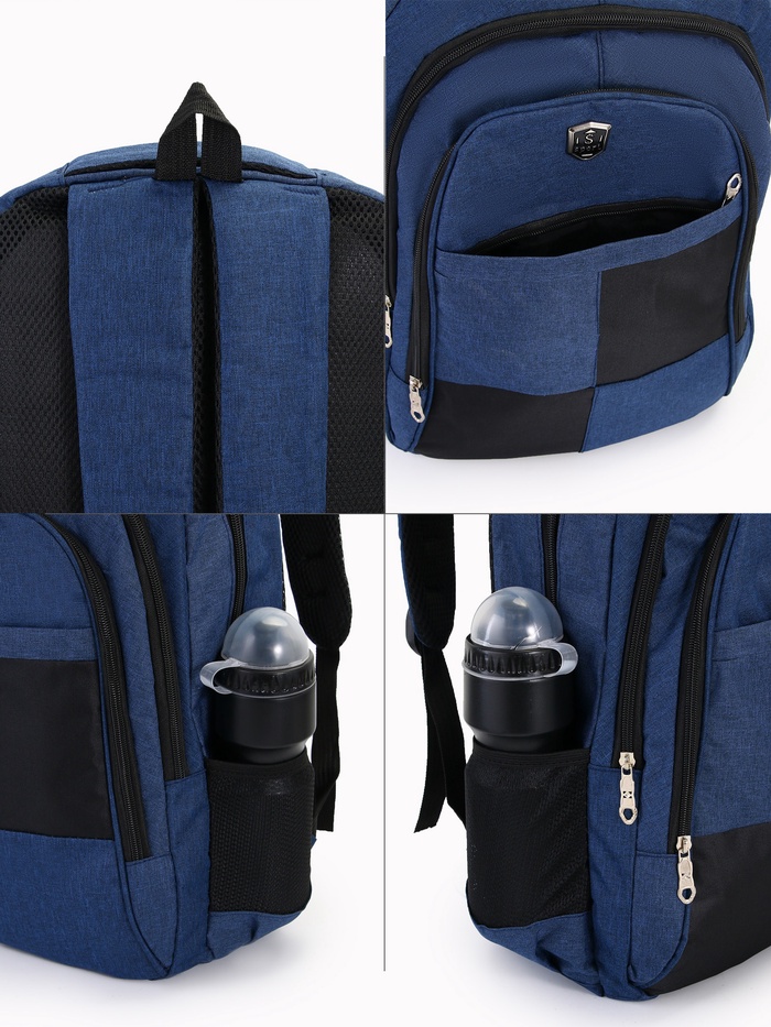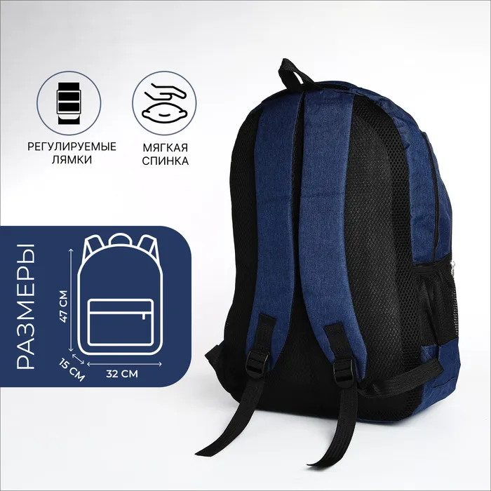 Рюкзак школьный из текстиля, 2 отдела, 4 кармана, цвет синий — Характеристики