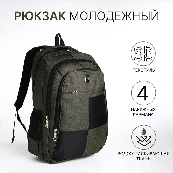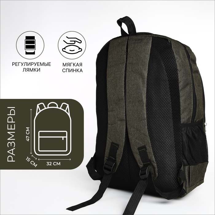 Рюкзак школьный из текстиля, 2 отдела, 4 кармана, цвет зелёный — Характеристики