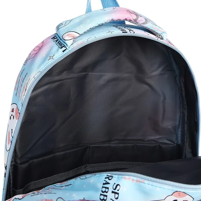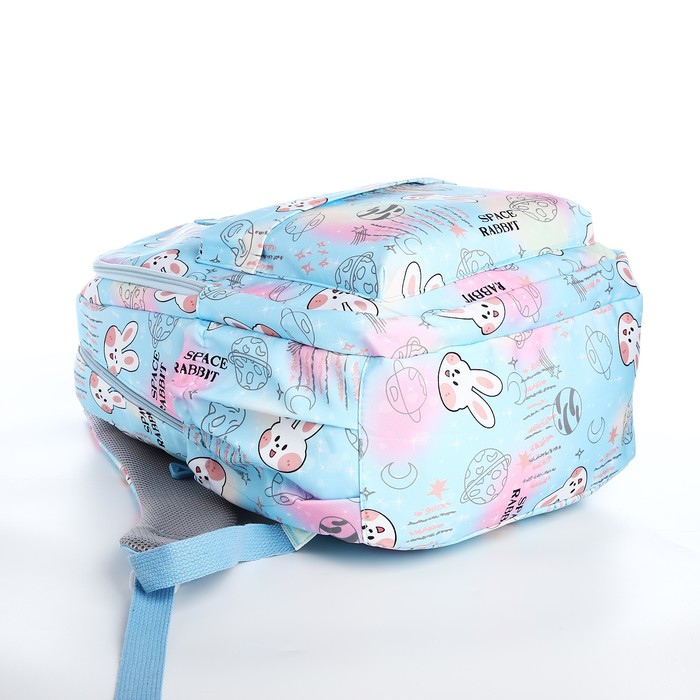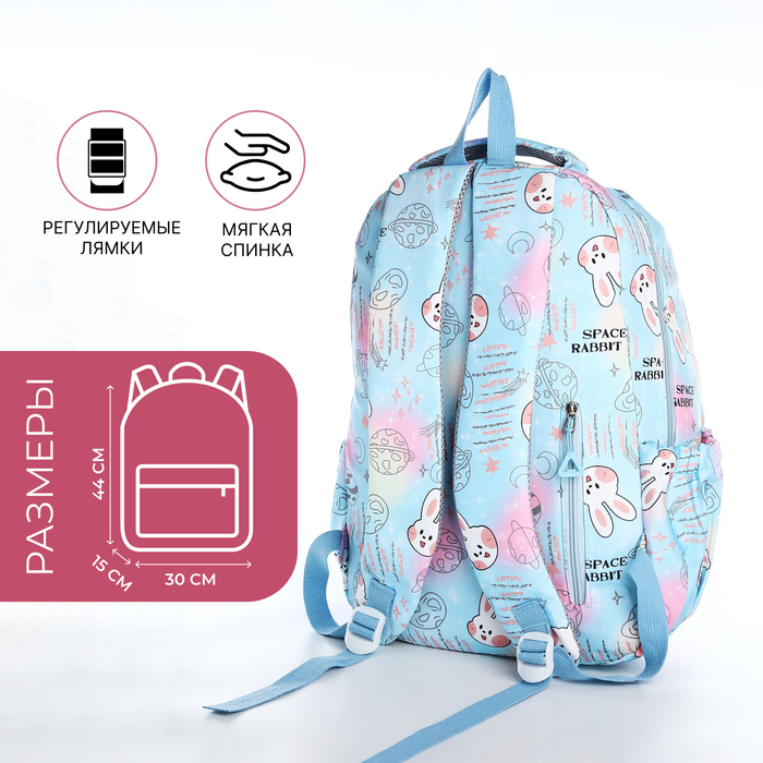 Рюкзак школьный из текстиля 2 отдела на молнии, 4 кармана, голубой — Характеристики