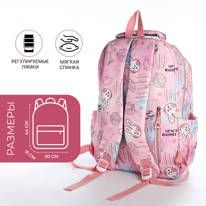 Рюкзак школьный из текстиля 2 отдела на молнии, 4 кармана, розовый — Характеристики