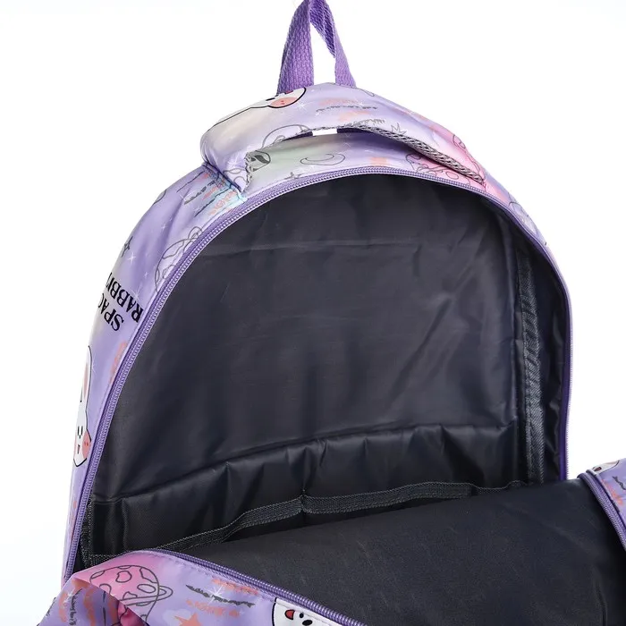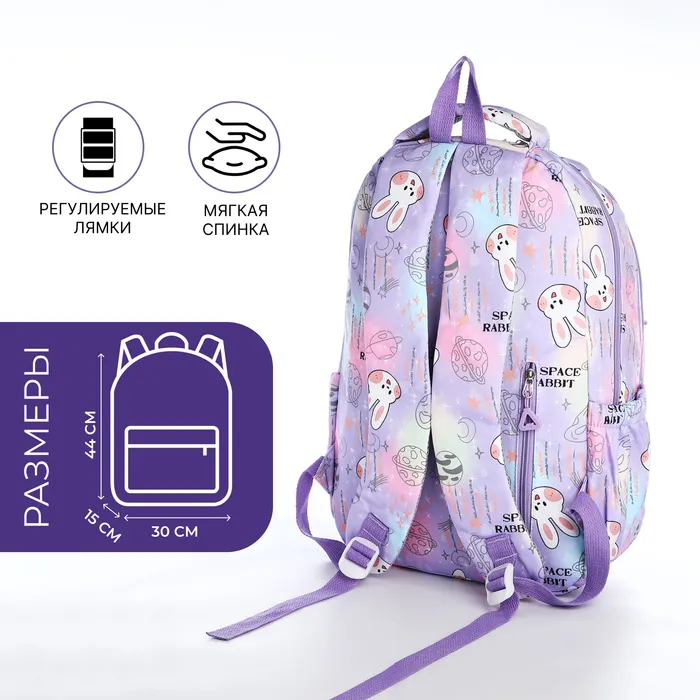 Рюкзак школьный из текстиля 2 отдела на молнии, 4 кармана, сиреневый — Характеристики