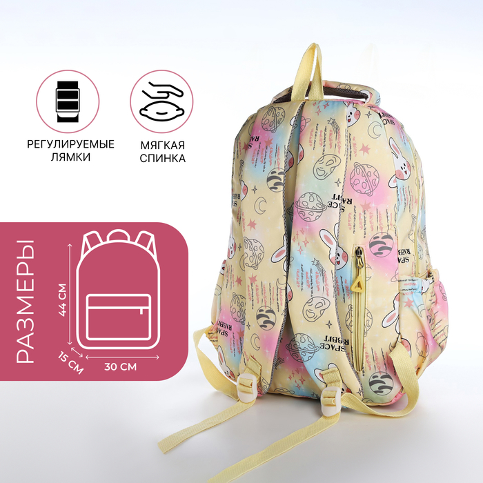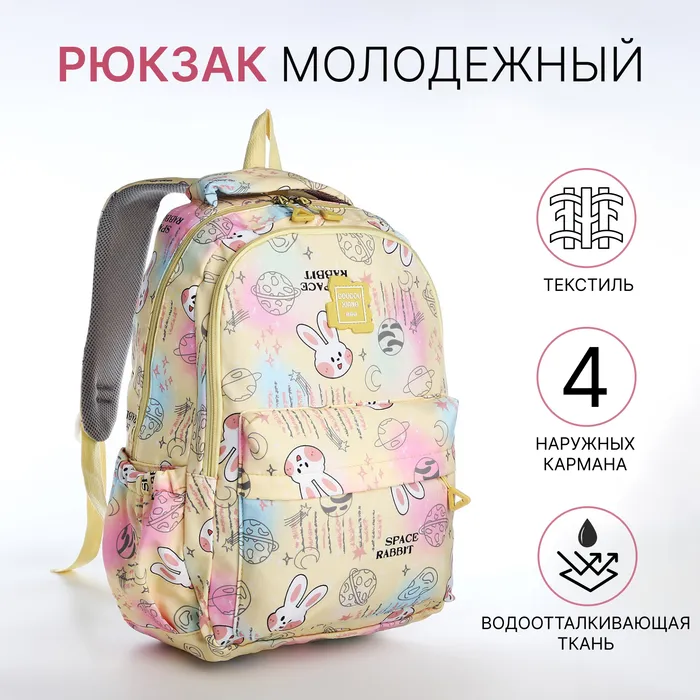 Рюкзак школьный из текстиля 2 отдела на молнии, 4 кармана, жёлтый — Характеристики