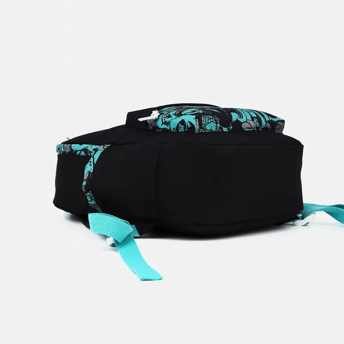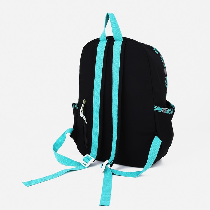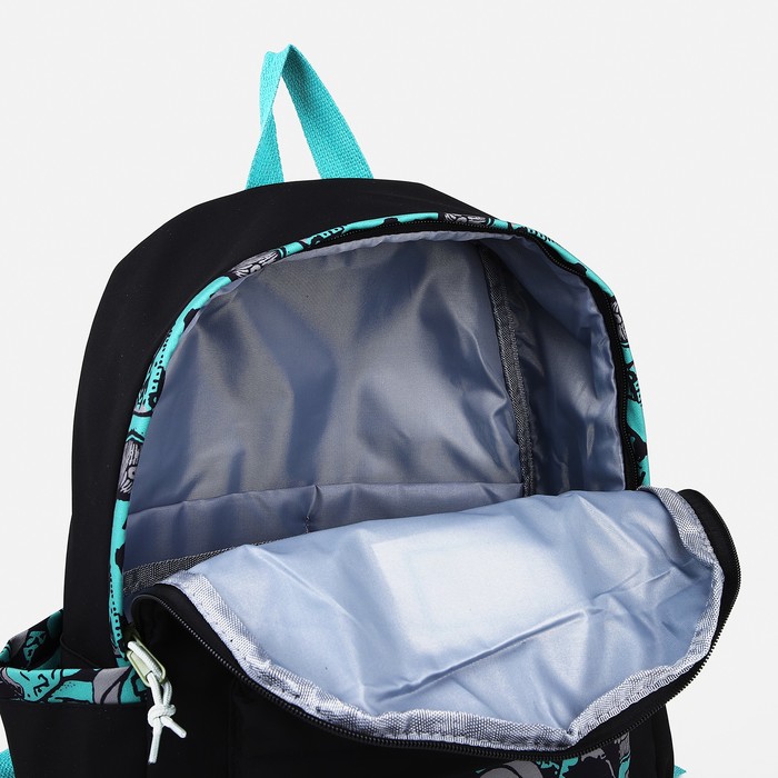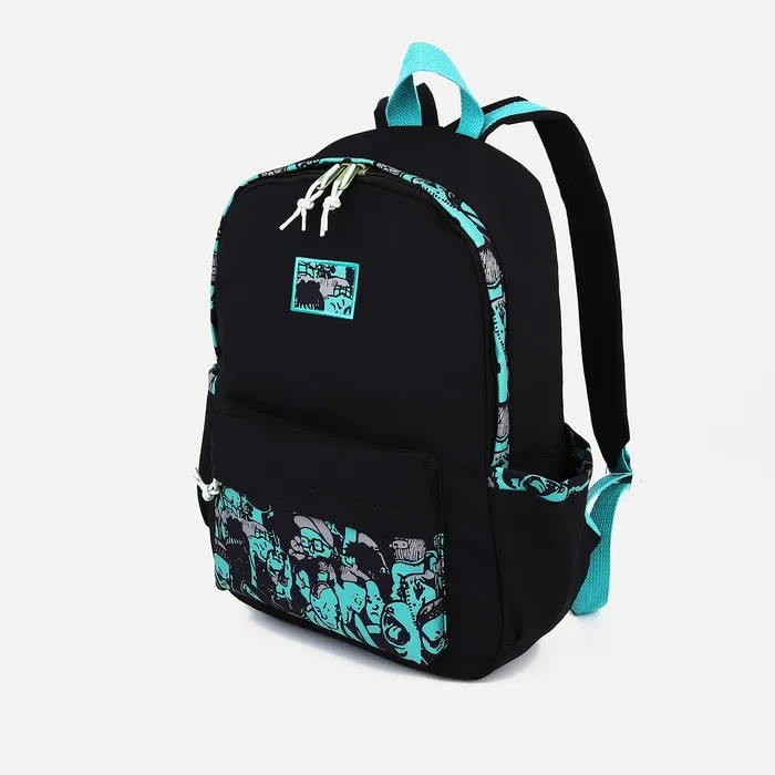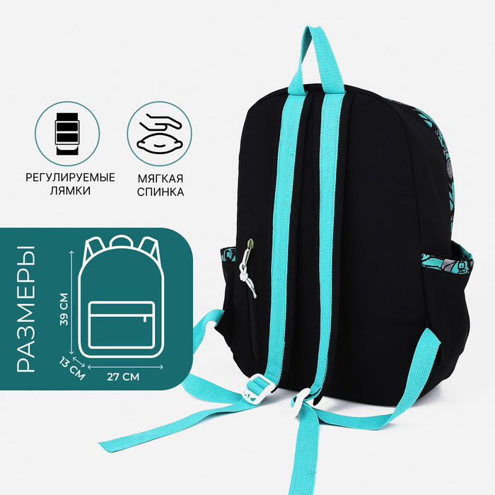 Рюкзак школьный из текстиля, 4 кармана, цвет чёрный/зелёный — Характеристики