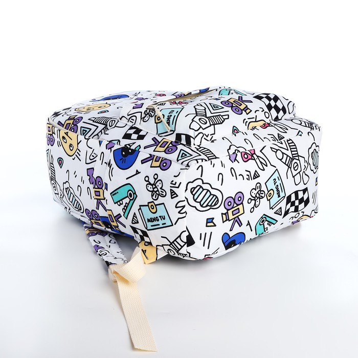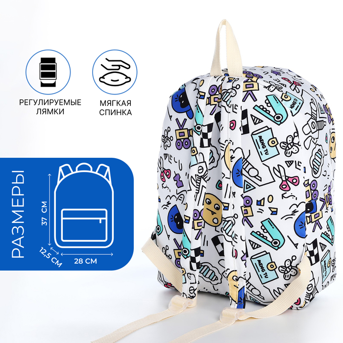 Рюкзак школьный из текстиля на молнии, 3 кармана, белый, разноцветный — Характеристики