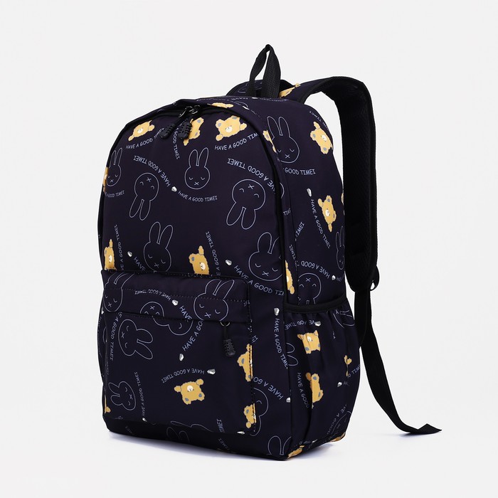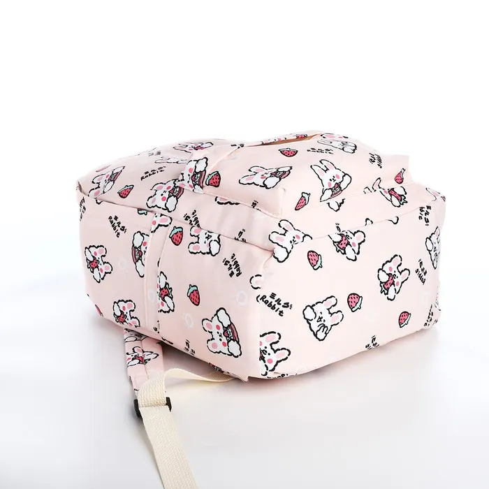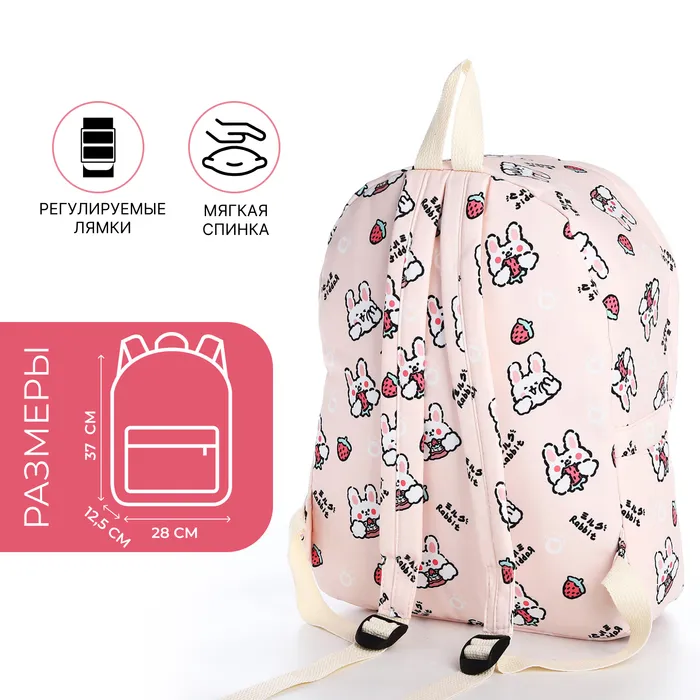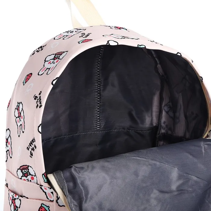 Рюкзак школьный из текстиля на молнии, 3 кармана, размер 28×12.5×37 см, бежевый/розовый — Характеристики