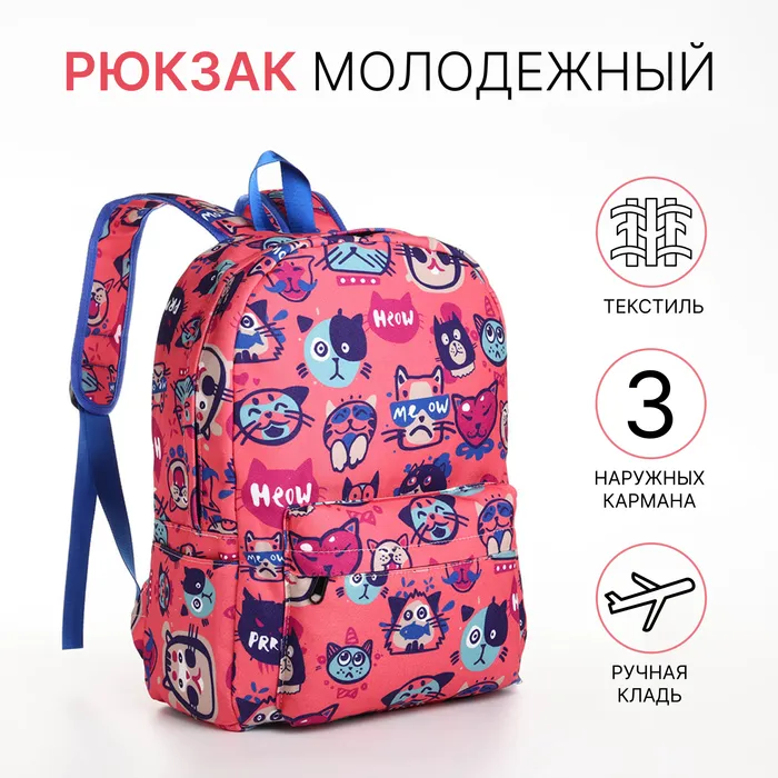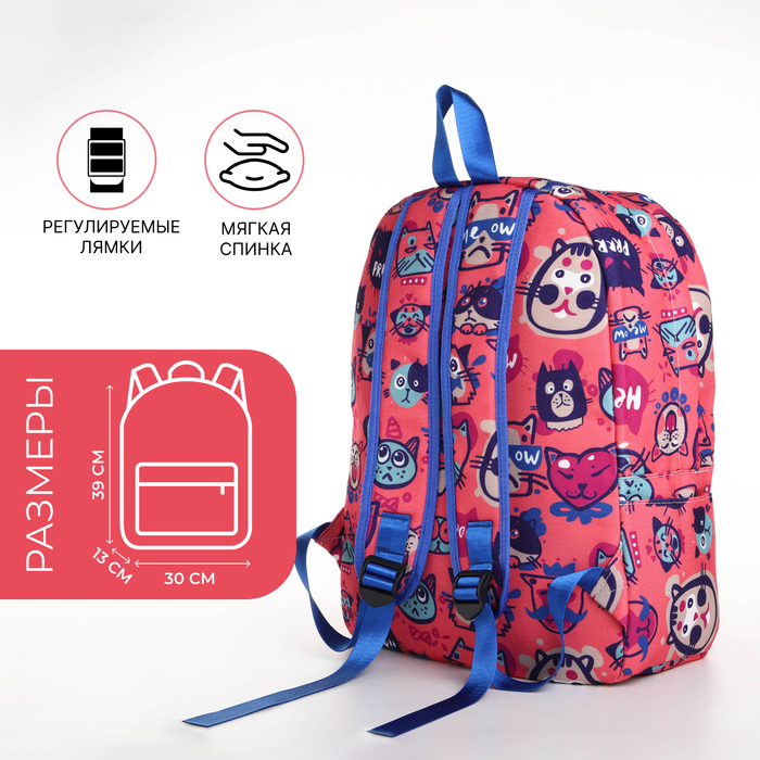 Рюкзак школьный из текстиля на молнии, 3 кармана, цвет розовый — Характеристики