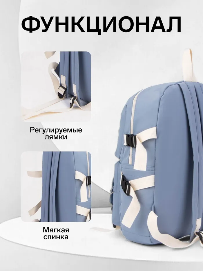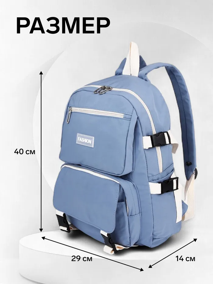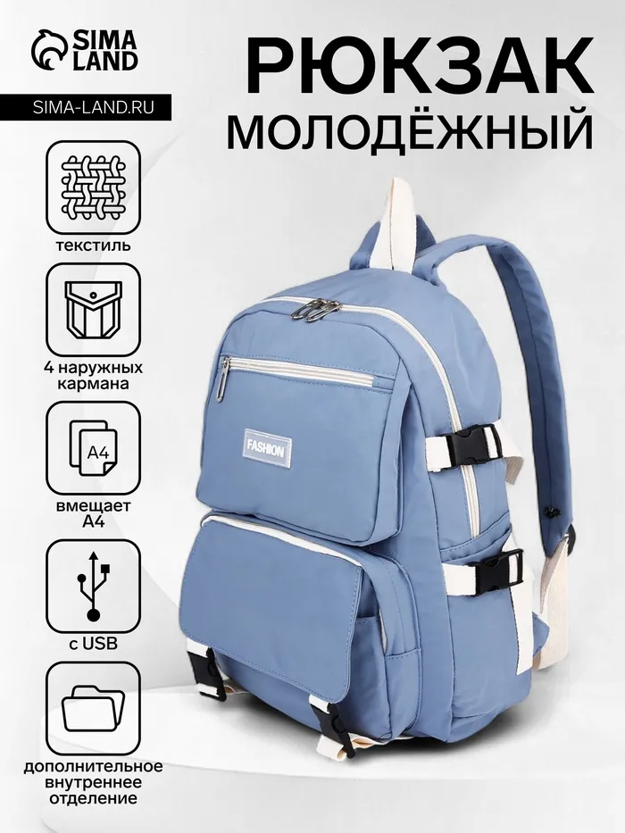 Рюкзак школьный из текстиля на молнии, 4 кармана, цвет голубой — Характеристики