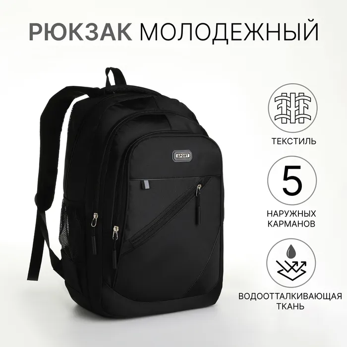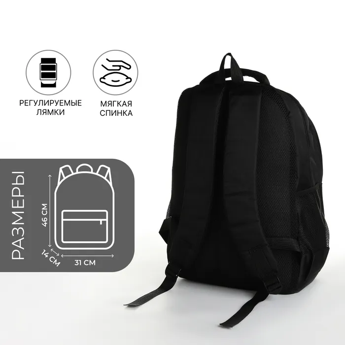 Рюкзак школьный из текстиля на молнии, 5 карманов, цвет чёрный/серый — Характеристики