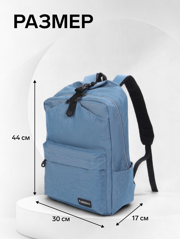 Рюкзак школьный из текстиля на молнии, FULLDORN, наружный карман, цвет голубой — Характеристики