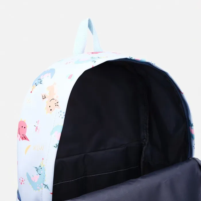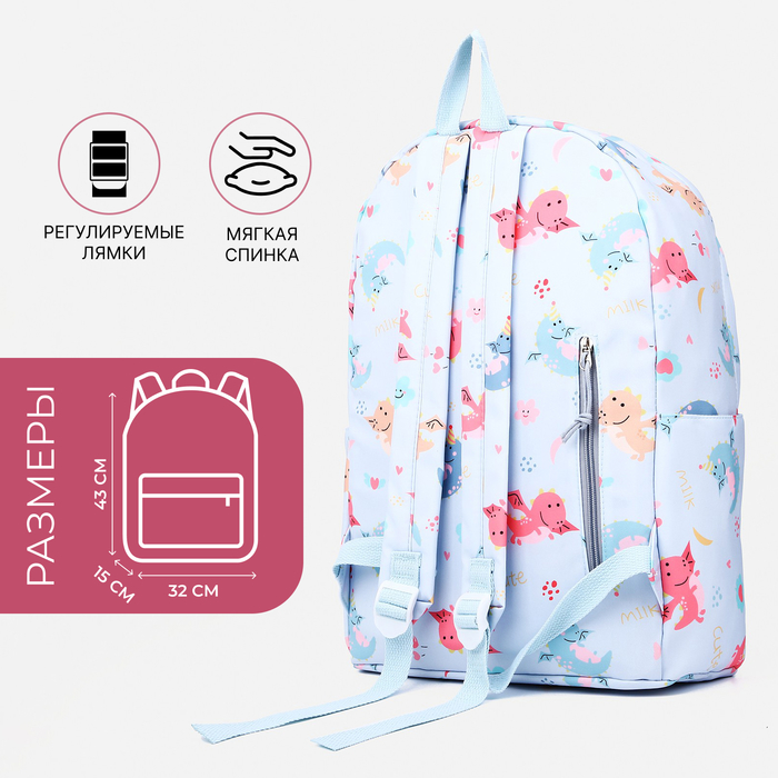 Рюкзак школьный из текстиля на молнии, наружный карман, голубой — Характеристики
