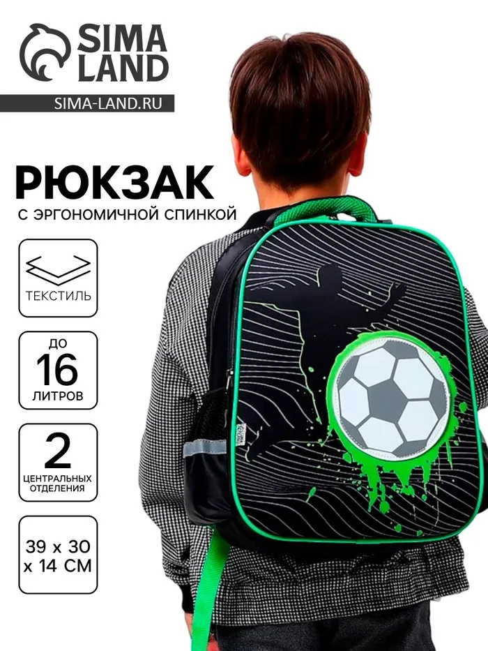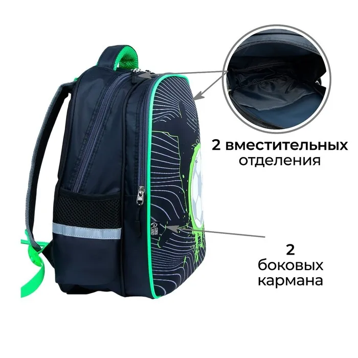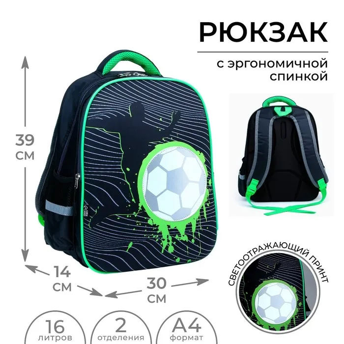 Рюкзак школьный каркасный 39×30×14 см «Мир футбола» — Характеристики