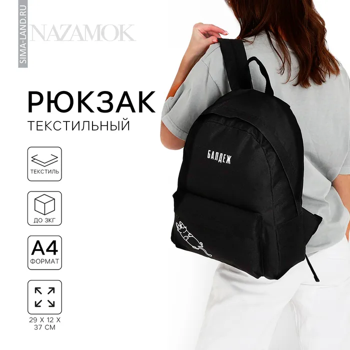 Рюкзак школьный молодёжный «Балдёж», отдел на молнии, наружный карман, чёрный — Характеристики