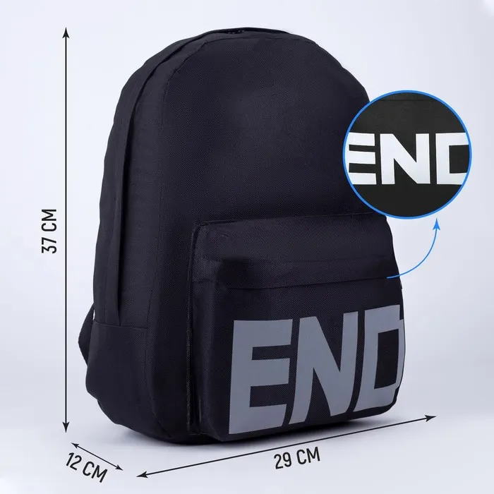 Рюкзак школьный молодёжный END, 29×12×37, отдел на молнии, наружный карман, светоотражающие ленты, чёрный — Характеристики