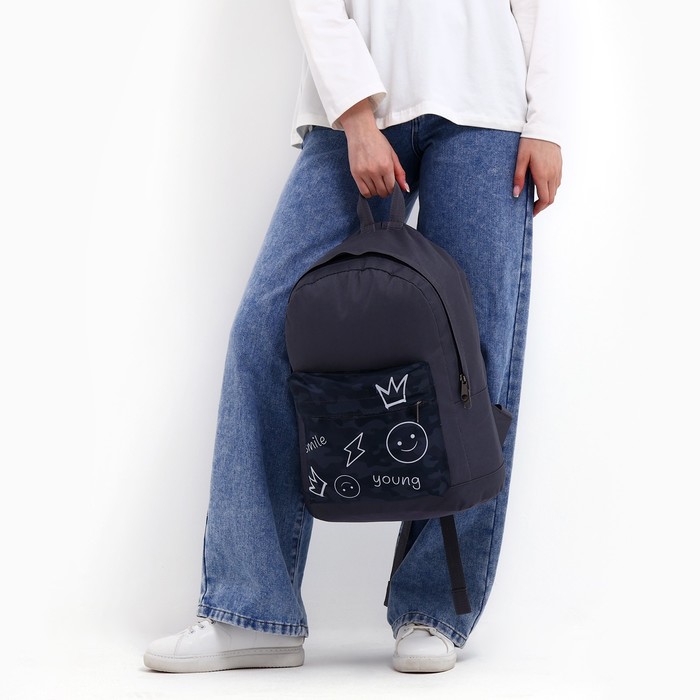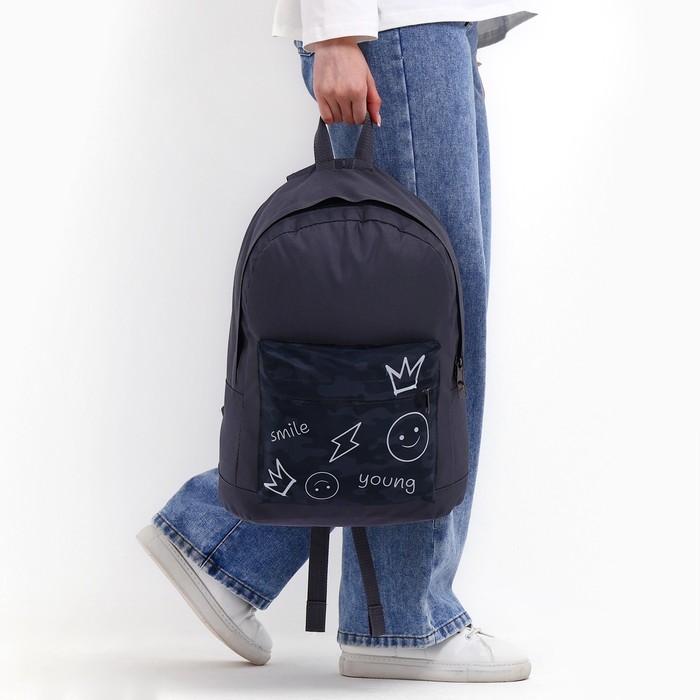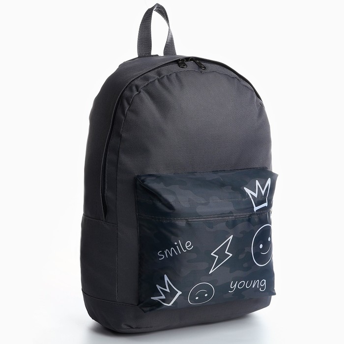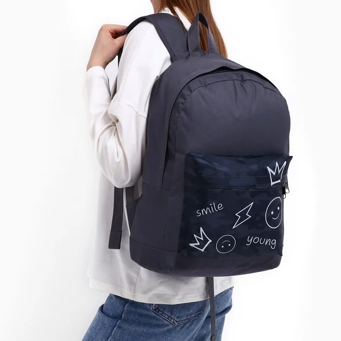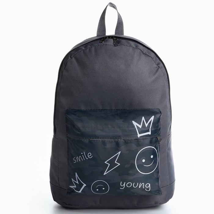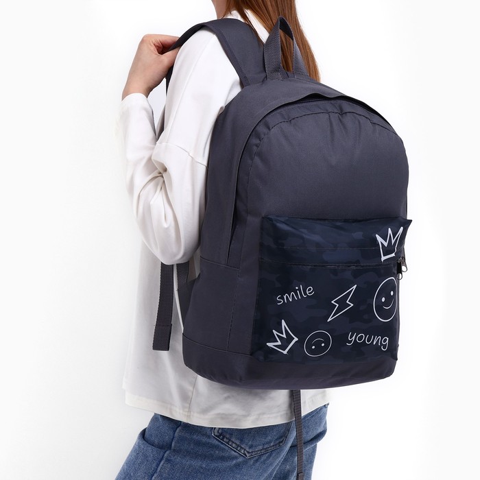Рюкзак школьный молодёжный «Хаки», 33×13×37, отдел на молнии, карман, серый — Характеристики
