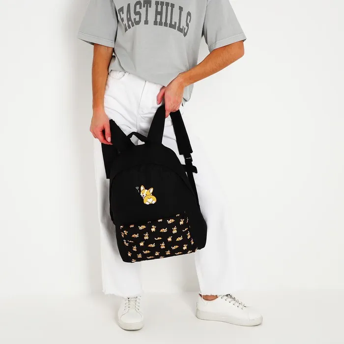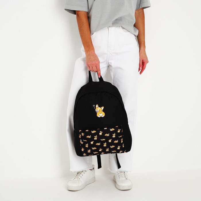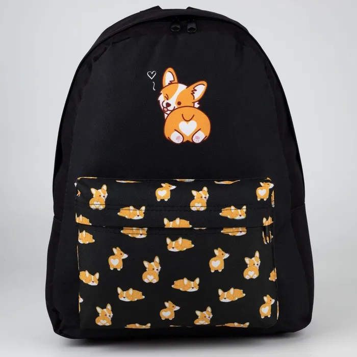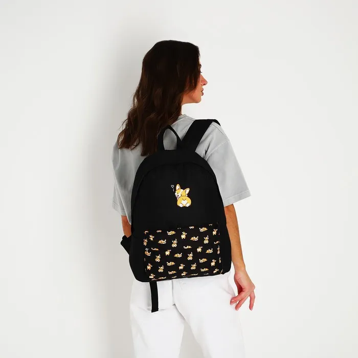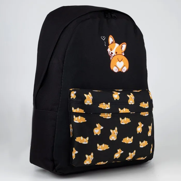 Рюкзак школьный молодёжный «Корги», 33×13×37 см, отдел на молнии, наружный карман, чёрный — Характеристики