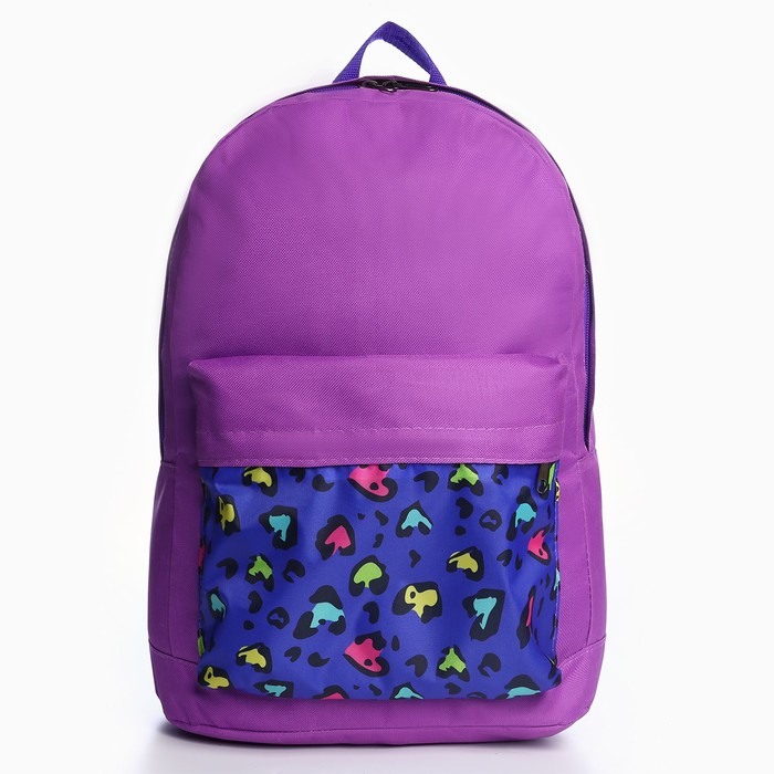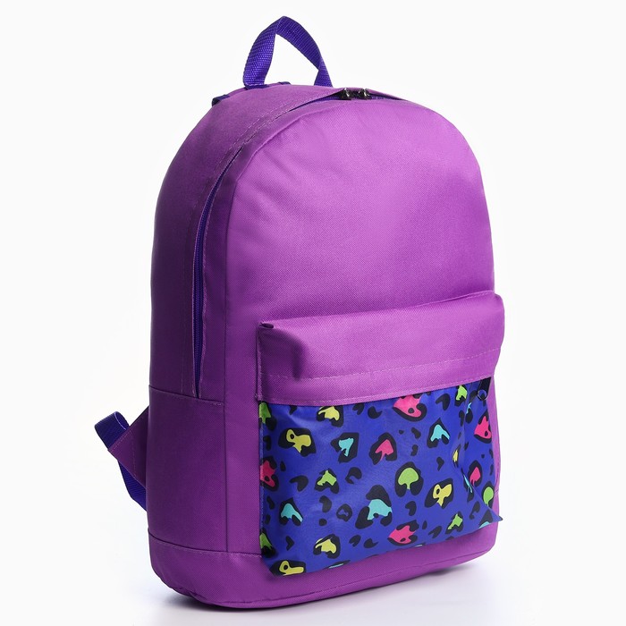 Рюкзак школьный молодёжный «Леопард», 33×13×37, отдел на молнии, карман, фиолетовый — Характеристики