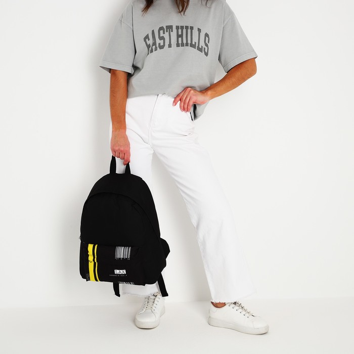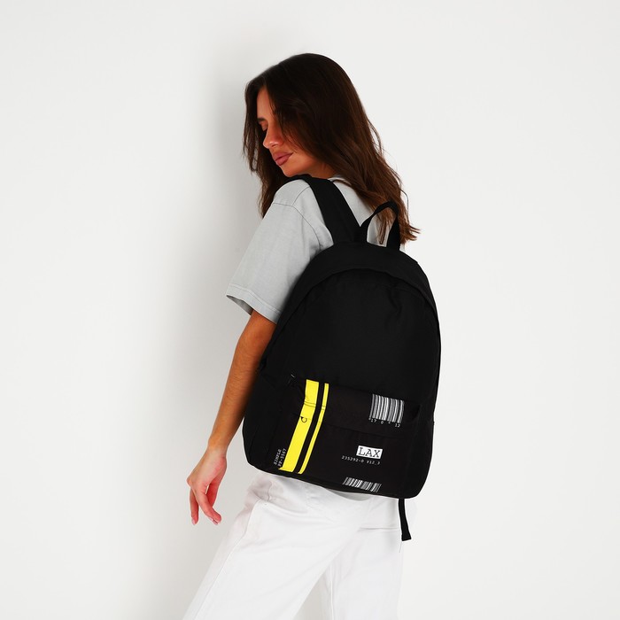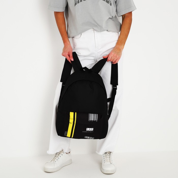 Рюкзак школьный молодёжный «Штрихкод», 33×13×37 см, отдел на молнии, наружный карман, чёрный — Характеристики