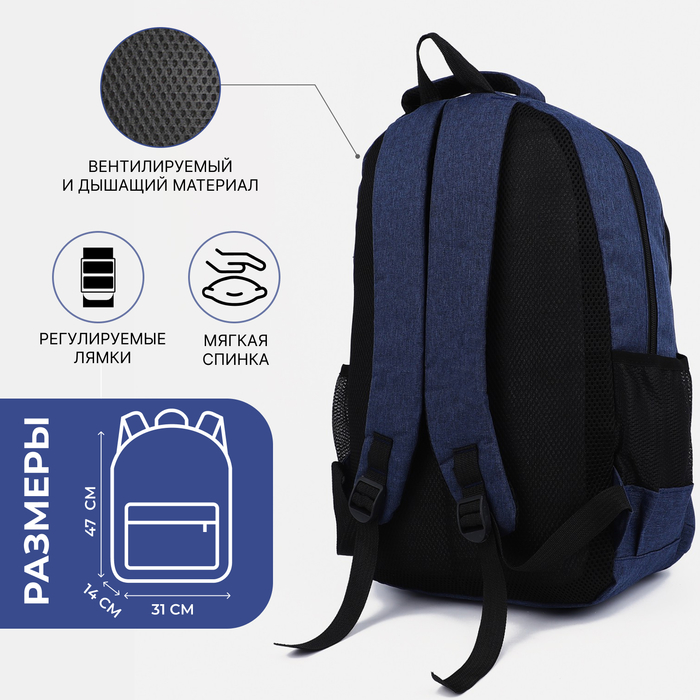Рюкзак школьный на молнии, 2 наружных кармана, синий — Характеристики