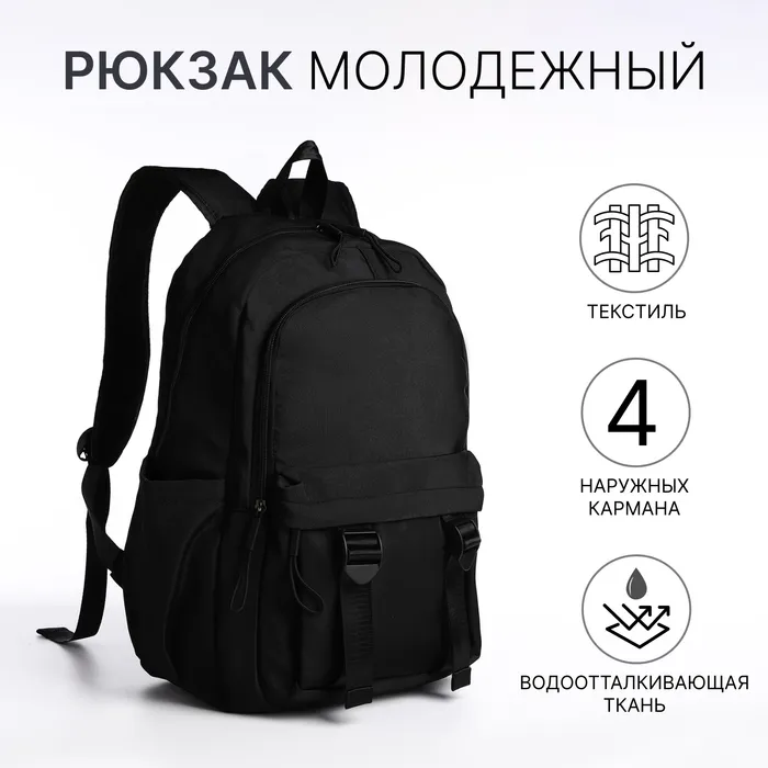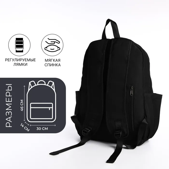 Рюкзак школьный на молнии, 2 отдела, 4 кармана, цвет чёрный — Характеристики