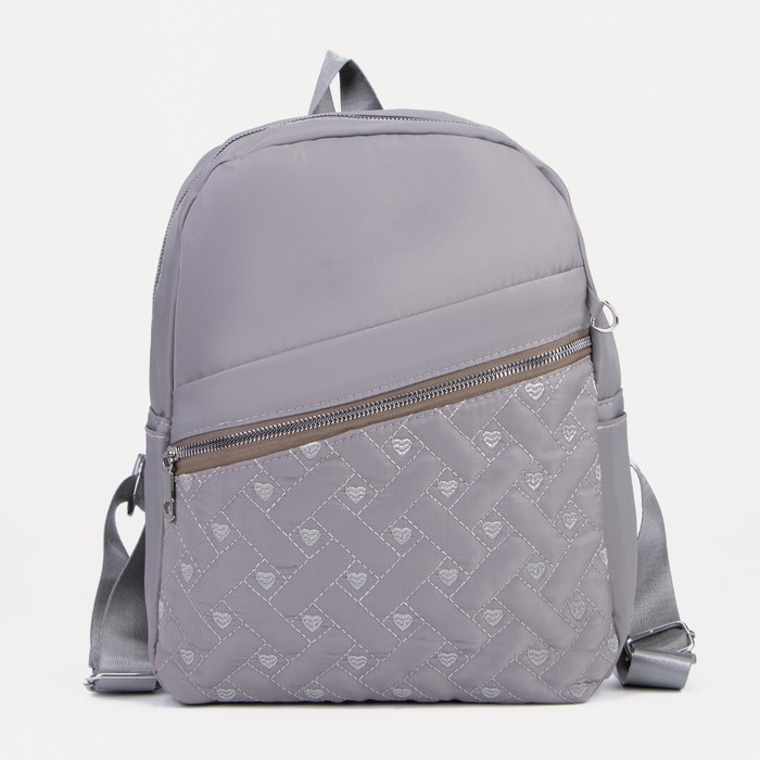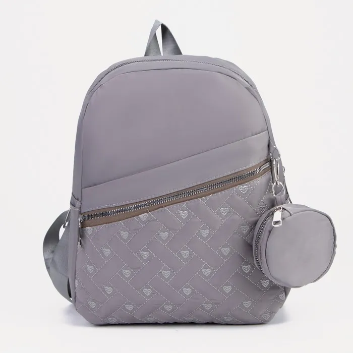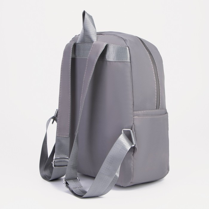 Рюкзак школьный на молнии, 3 наружных кармана, кошелёк, серый — Характеристики