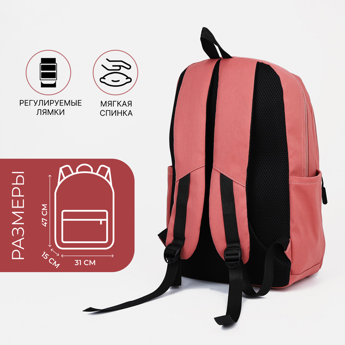 Рюкзак школьный на молнии, 3 наружных кармана, цвет розовый — Характеристики