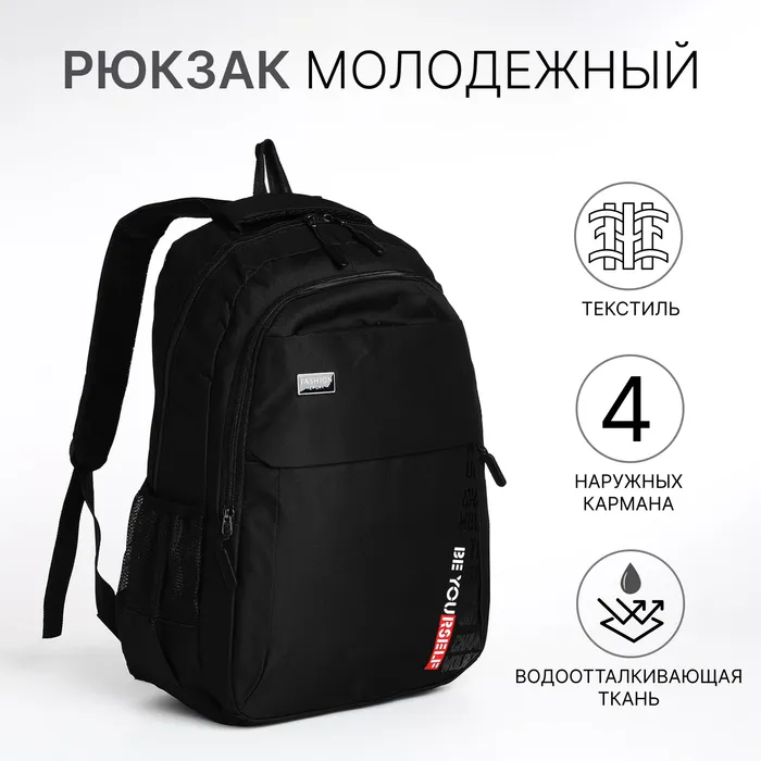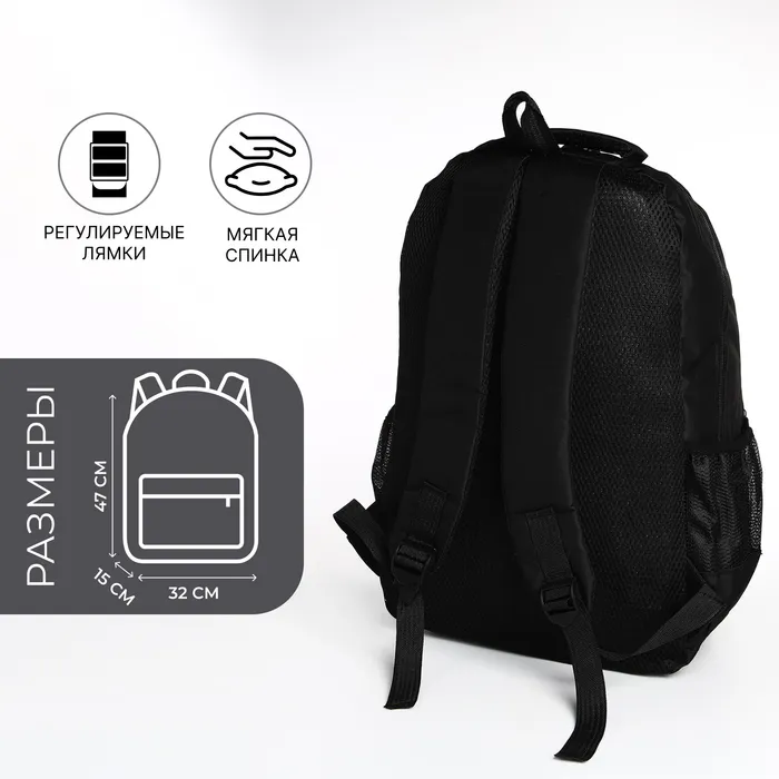 Рюкзак школьный на молнии, 4 кармана, цвет чёрный — Характеристики