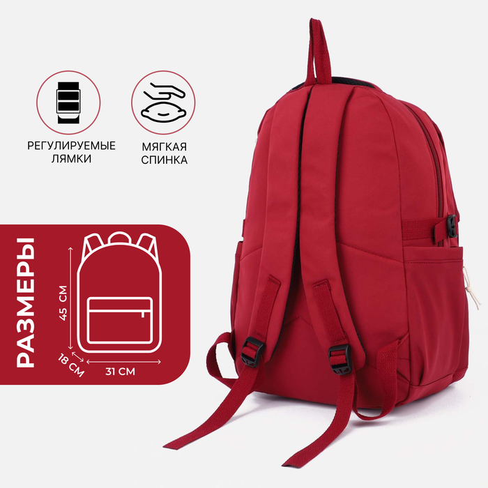 Рюкзак школьный на молнии, 4 наружных кармана, цвет красный — Характеристики