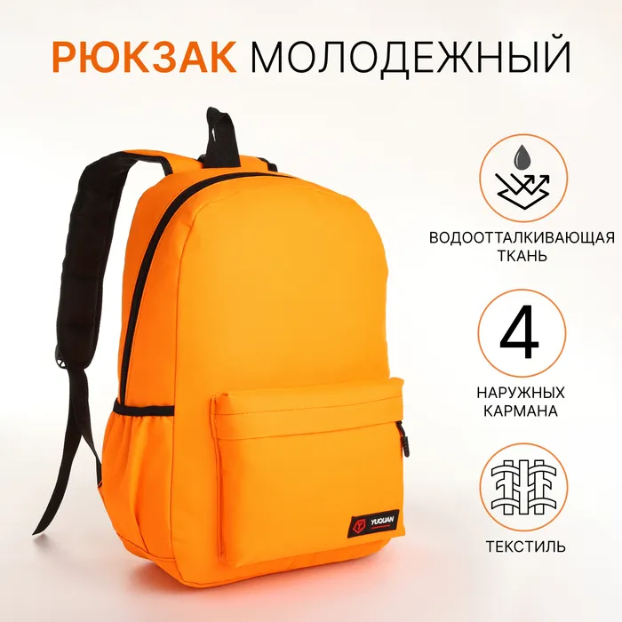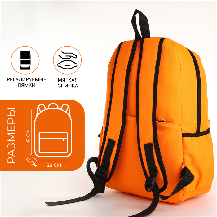 Рюкзак школьный на молнии, 4 наружных кармана, цвет оранжевый — Характеристики