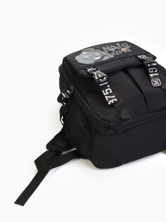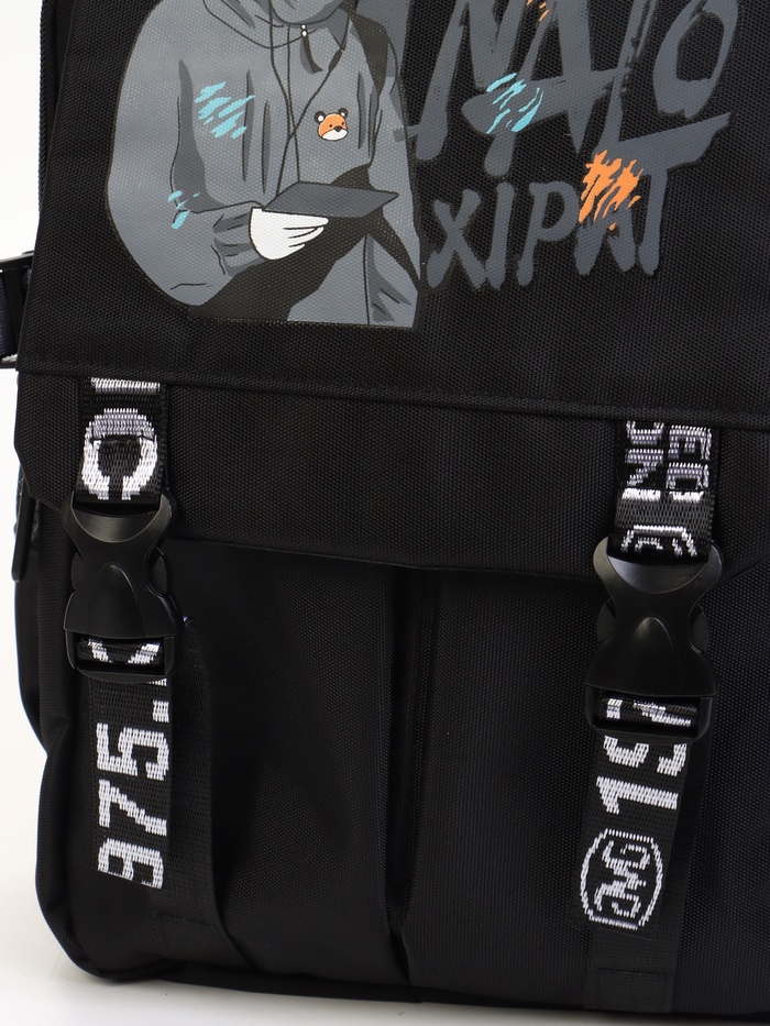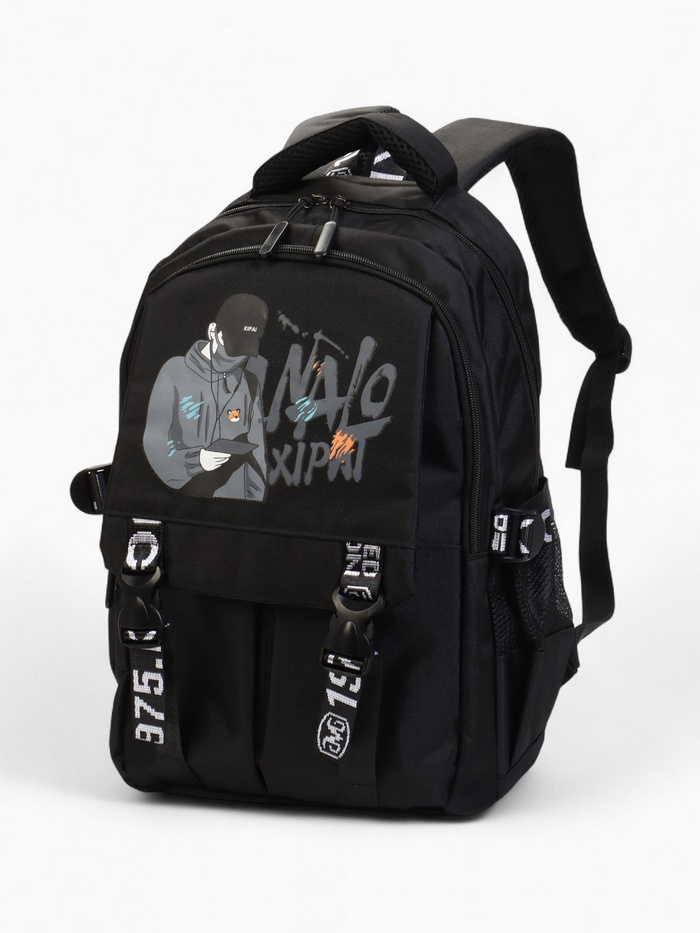 Этот чёрный школьный рюкзак с графичным принтом создан для учеников средних и старших классов. Мягкая конструкция и продуманное распределение карманов помогают организовать пространство для учебников и личных вещей.