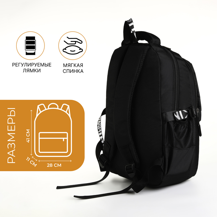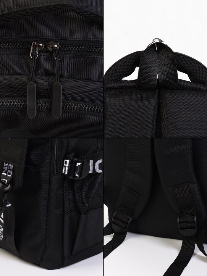 Рюкзак школьный на молнии, 5 наружных карманов, чёрный — Характеристики