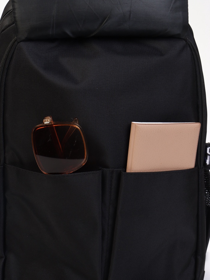 - Пять наружных карманов распределяют нагрузку: в боковые помещается бутылка с водой, в передние — телефон или проездной.