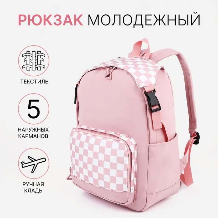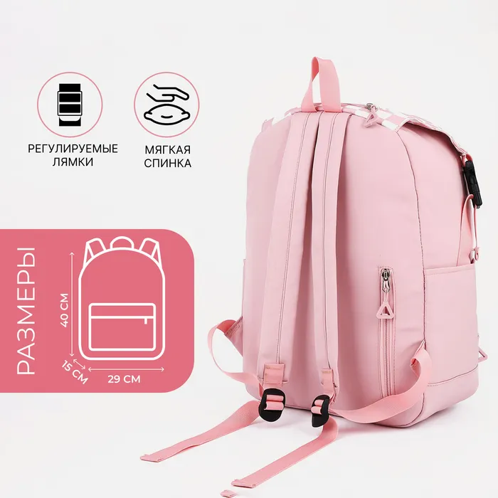 Рюкзак школьный на молнии, 5 наружных карманов, цвет розовый — Характеристики