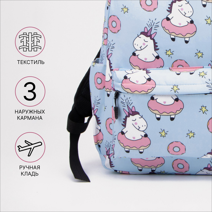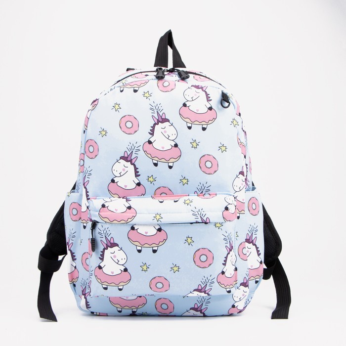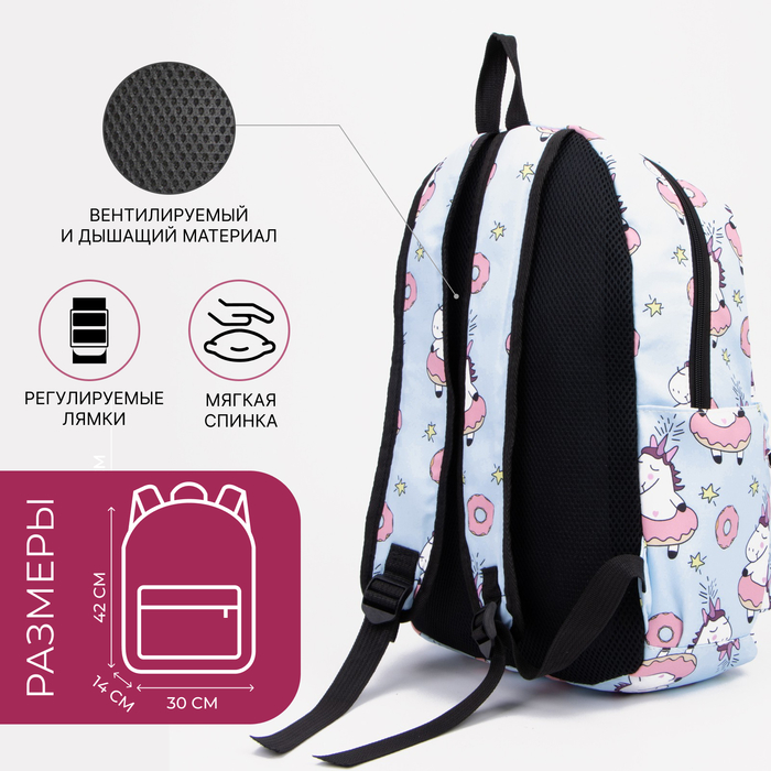 Рюкзак школьный на молнии, наружный карман, пенал, цвет голубой — Характеристики