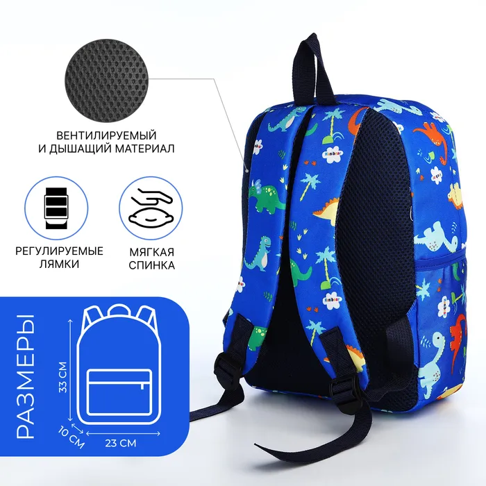 Рюкзак школьный на молнии, наружный карман, тёмно-голубой — Характеристики