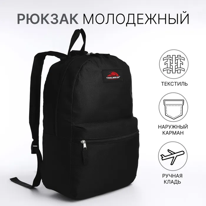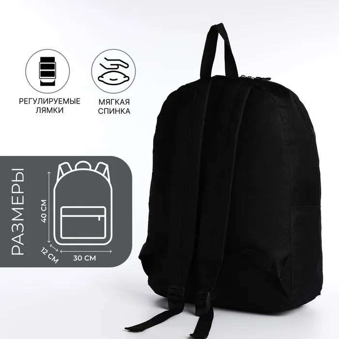 Рюкзак школьный на молнии, наружный карман, цвет чёрный — Характеристики
