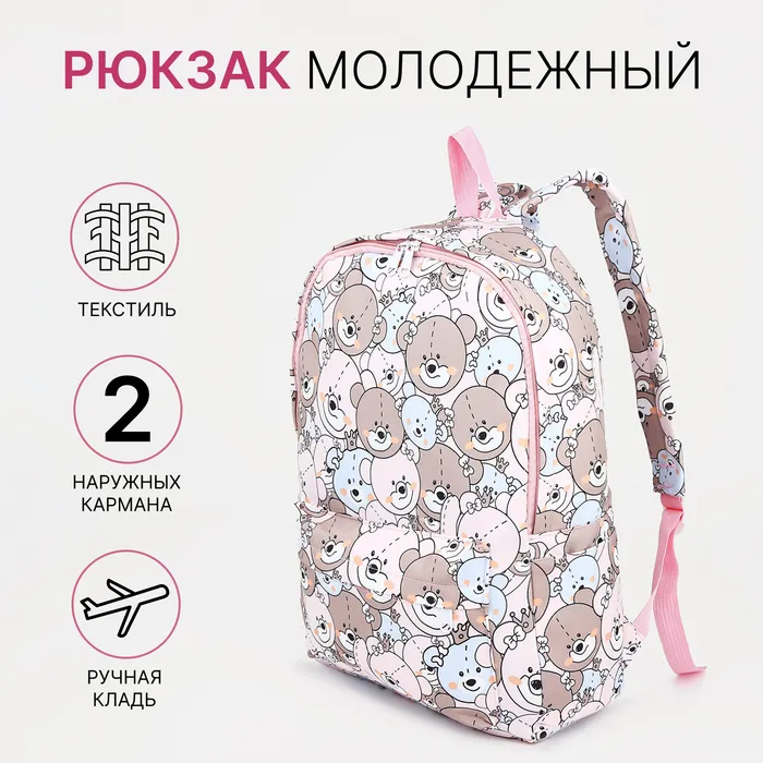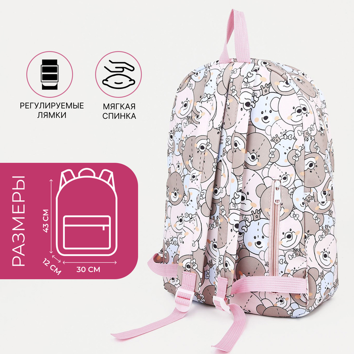 Рюкзак школьный на молнии, наружный карман, цвет розовый — Характеристики