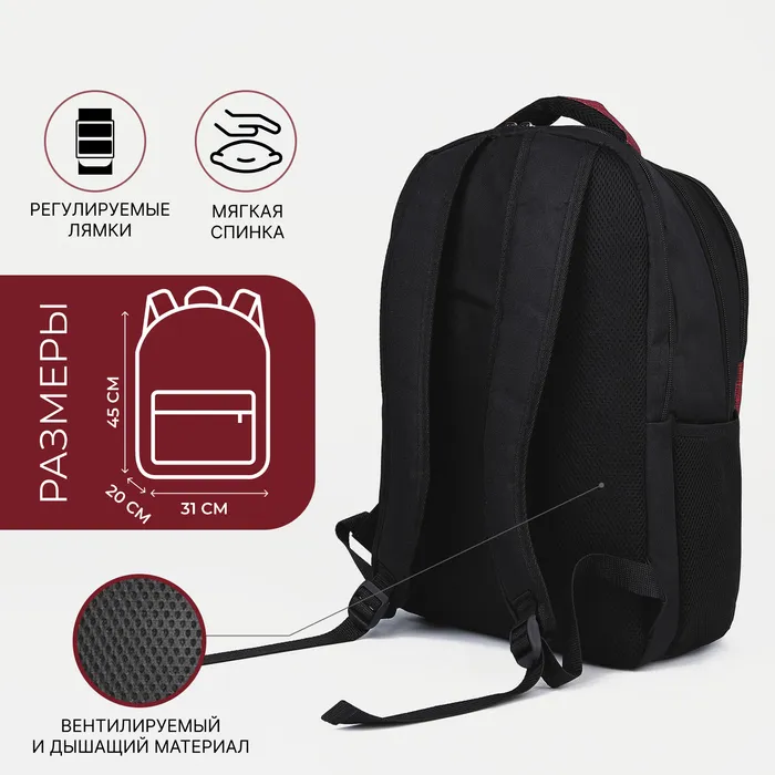 Рюкзак школьный на молнии RISE, наружный карман, цвет красный — Характеристики
