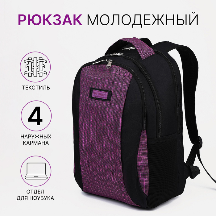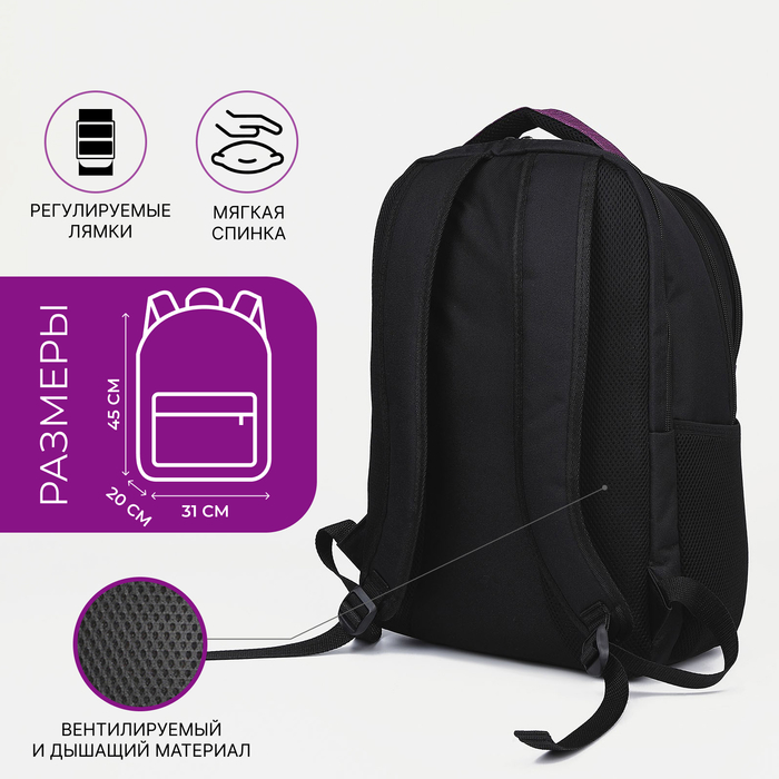 Рюкзак школьный на молнии RISE, наружный карман, цвет сиреневый — Характеристики