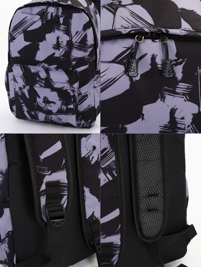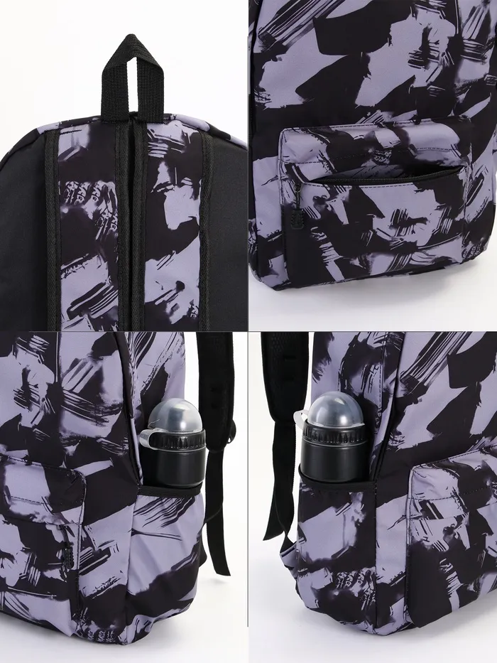 Рюкзак школьный на молнии, с карманами, абстрактным рисунком, размер 30×13×42 см, чёрный/серый — Характеристики