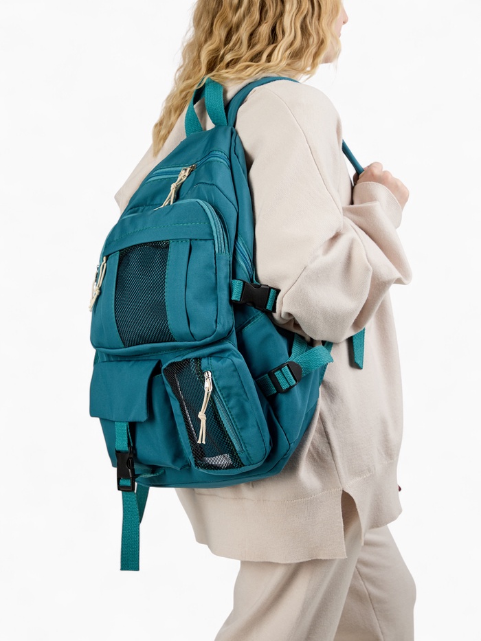 Рюкзак школьный на молнии, с карманами, бирюзовый — Характеристики
