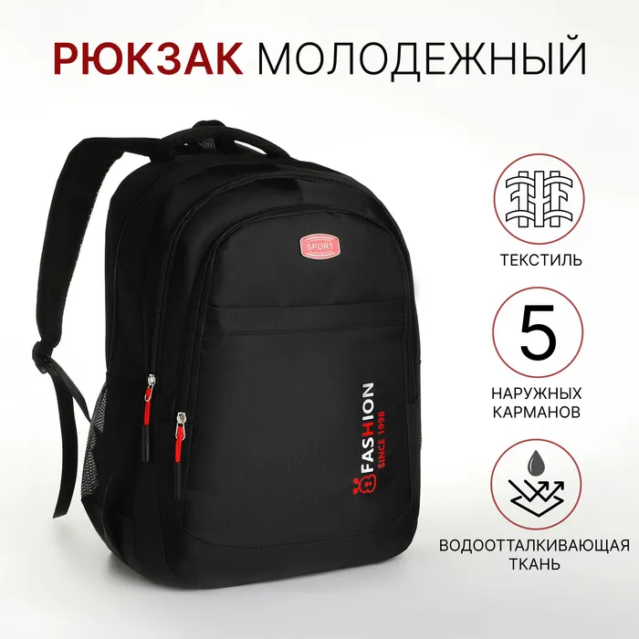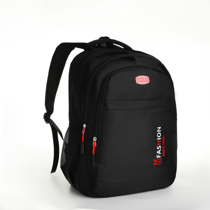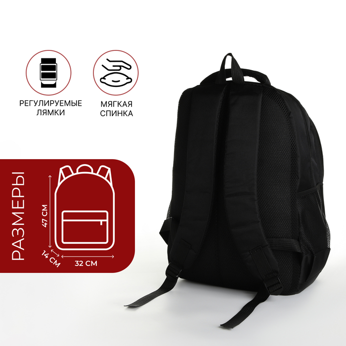 Рюкзак школьный на молнии, с карманами, чёрный/красный — Характеристики