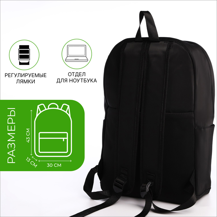 Рюкзак школьный на молнии, с карманами, чёрный/зелёный — Характеристики