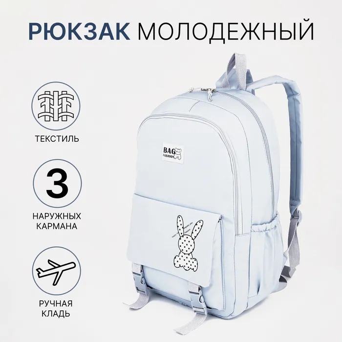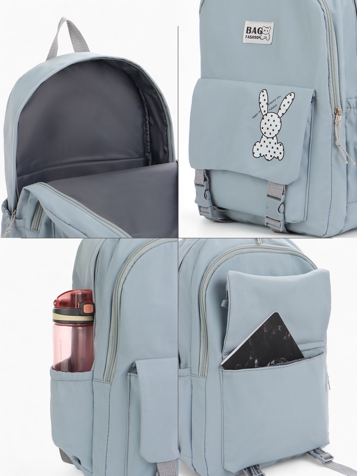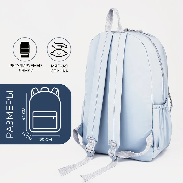 Рюкзак школьный на молнии, с карманами, голубой — Характеристики