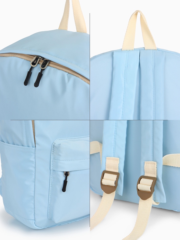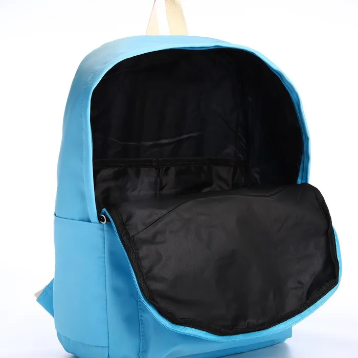Рюкзак школьный на молнии, с карманами, однотонный, размер 28×12×42 см, голубой — Характеристики